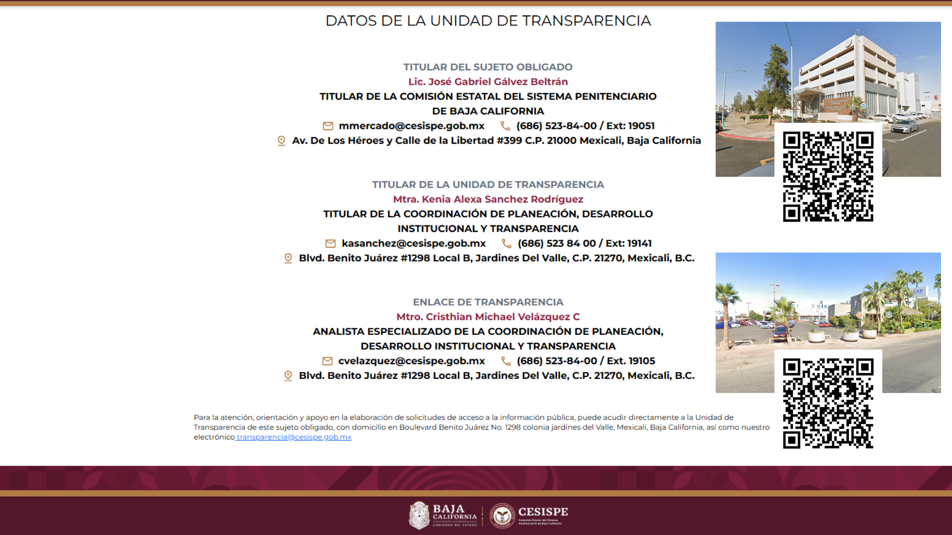 DATOS DE CONTACTO¿Dudas? Contacta a la Unidad de Transparencia de la CESISPE. |