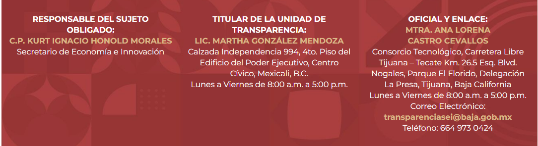 DATOS DE CONTACTO DE LA UT DE LA SEIBCAcceso a datos de contacto de la Unidad de Transparencia de la Secretaría de Economía e Innovación. |